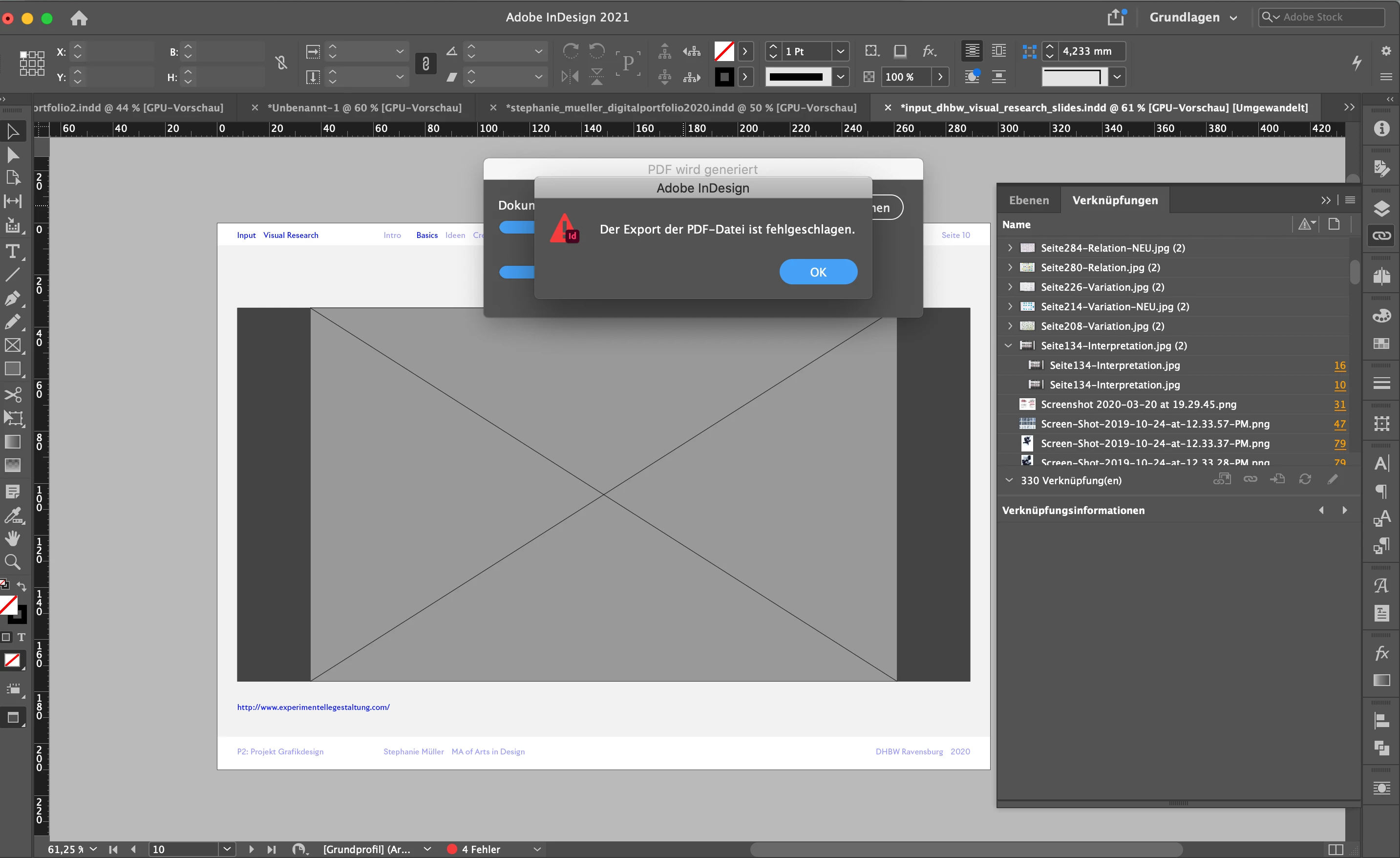 InDesign keeps losing my file or image links even though they are not having the status of being disconnected, I can also recall them directly via the finder and only if I drag and drop them again they will show up in the presentation mode or in a rendered PDF – otherwise the image boxes remain empty. Only in the normal view they seem to be there, but as soon as I set "higher resolution view" they go blank.