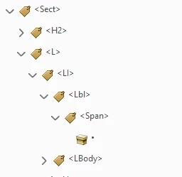 3. When opening the PDF in Adobe Acrobat Pro, the nesting order for bullet lists should be: List > List Item > Label and List Item Body.