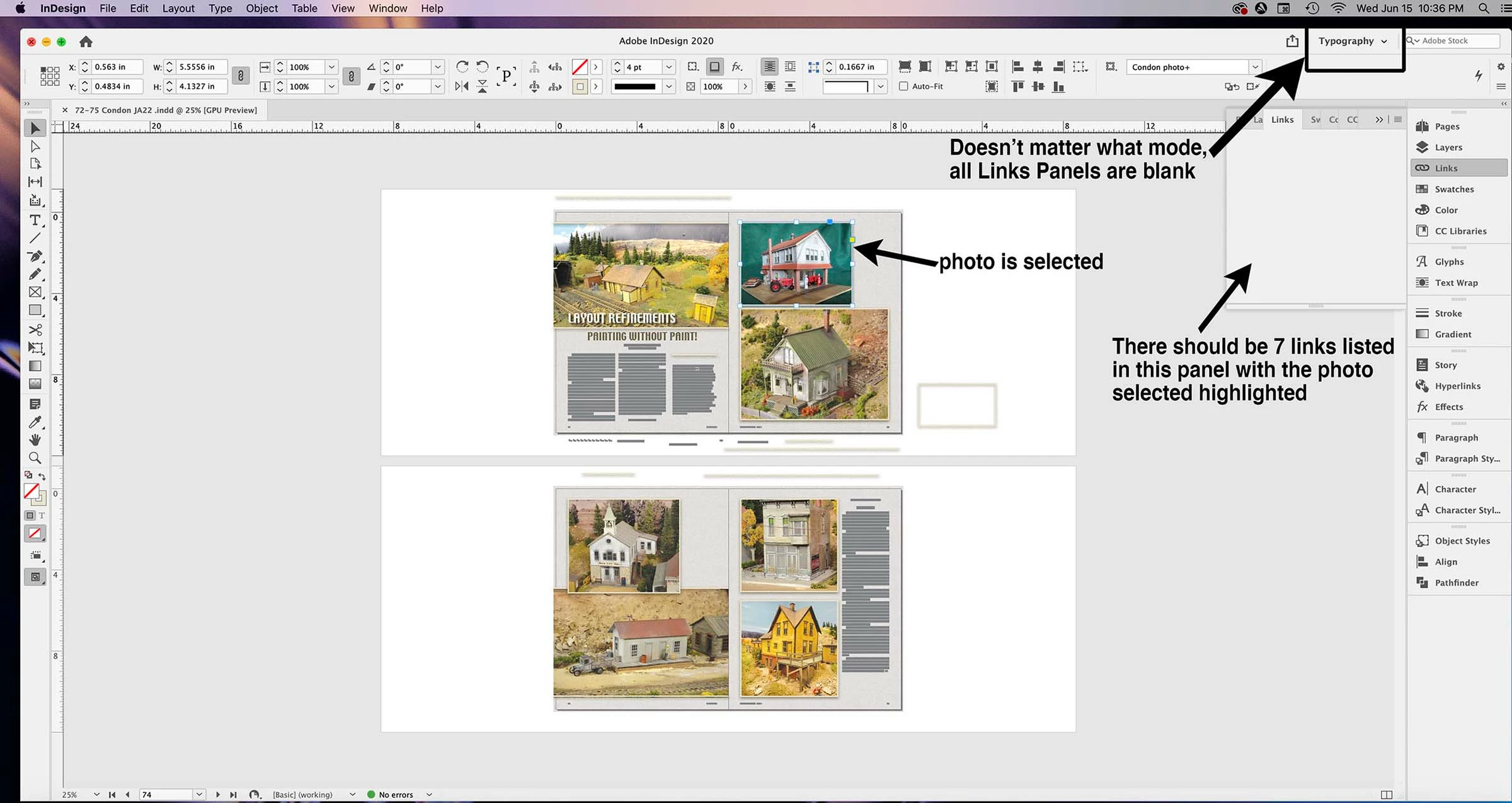 InDesign Links Panel blank