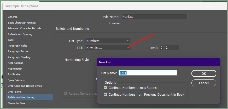 It can't hurt to give your main list a style name as well — perhaps just "Main." Make sure all styles within it are assigned to that same name.