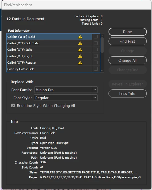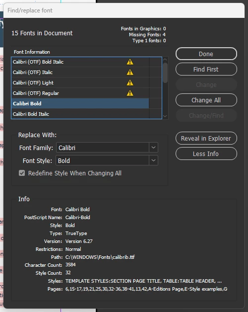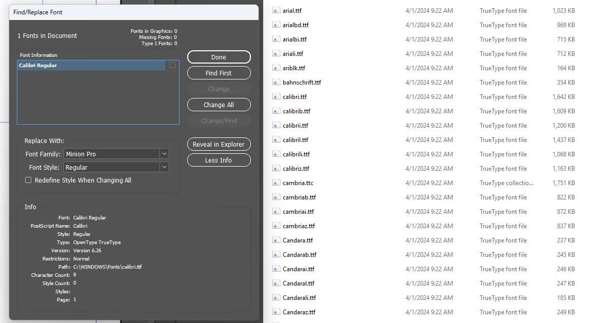 Thank you again for your patience and for sharing all the details so far. I’m currently checking this internally with the product team. We’re trying to determine whether multiple versions or different outline formats of Calibri might be installed after the recent Windows updates, which could be causing the conflict in InDesign.