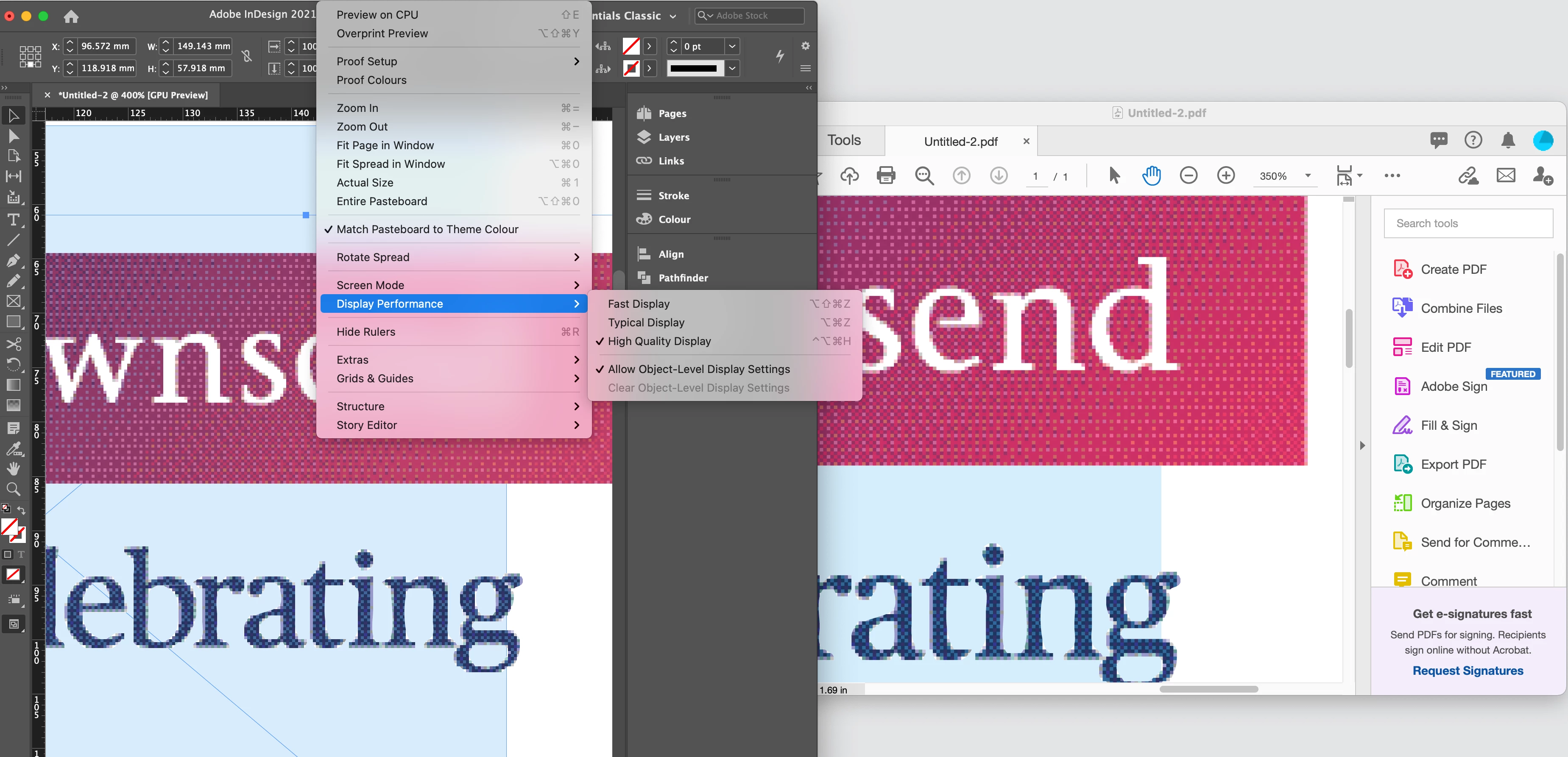 I have just moved from inDesign 2019 on an iMac to indesign 2021 on a new Macbook Pro and I am having issues with image files as .eps or .ai format imported or dragged from a folder on an inDesign file. The images are pixelated even though they are pure vectors. I have';t had this issue before (30 years a graphic designer) and I have checked all my prefences and setting and they are the same as I have always used.