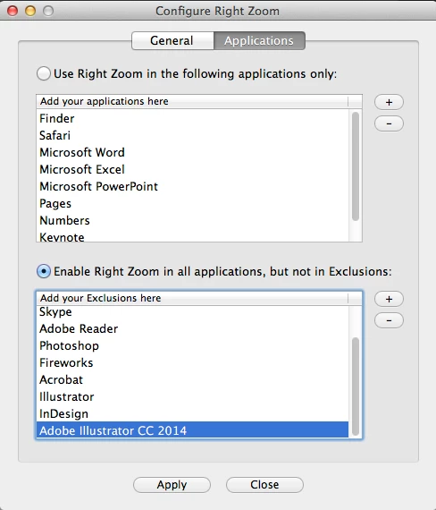 Right Zoom is a third party App. Try to deacivate it if you have issues in other apps if you have it installed.