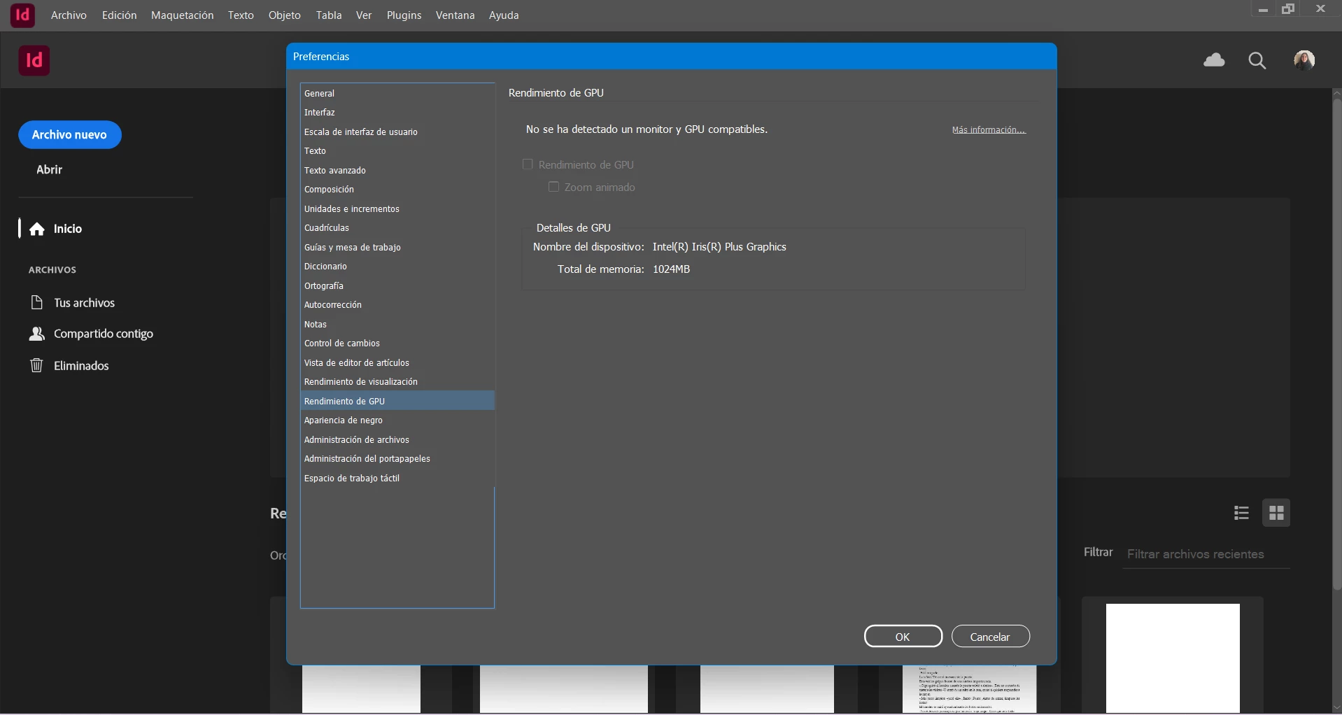 I have it formatted in Spanish, but it says "No compatible monitor or GPU