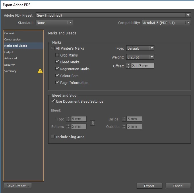 I am working on a brochure to be export in PDF with bleeding of 5mm.