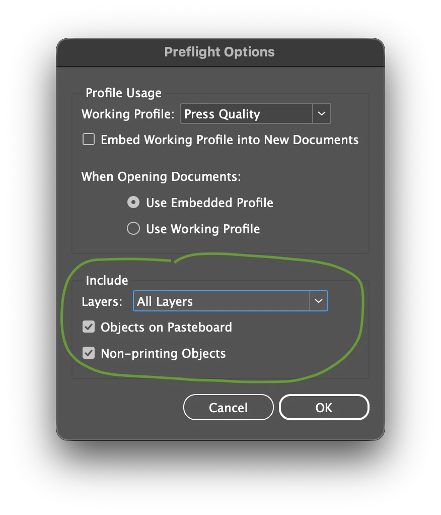 indesign preflight warn for only visible items