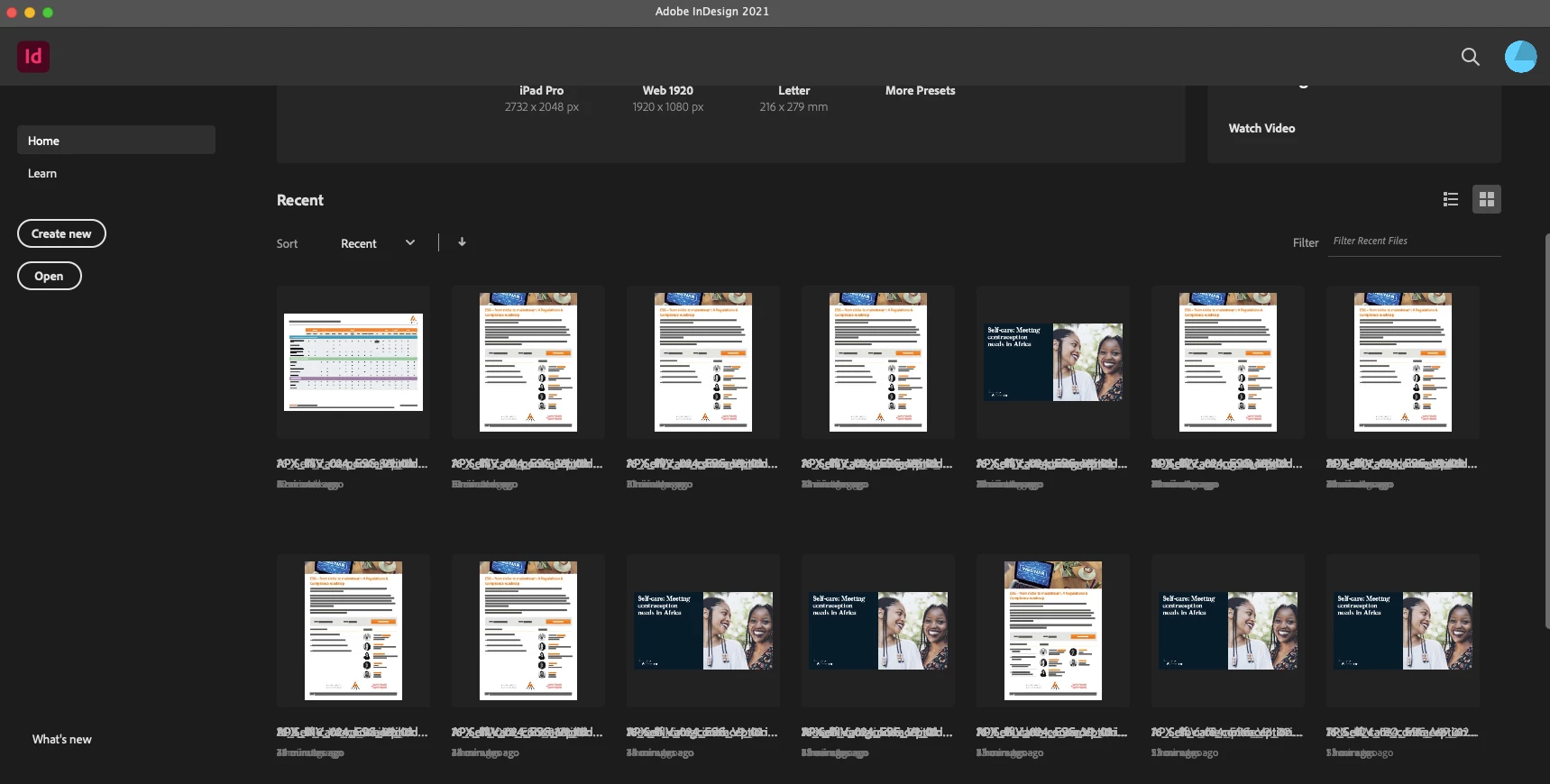 InDesign recent files on home screen text all jumbled