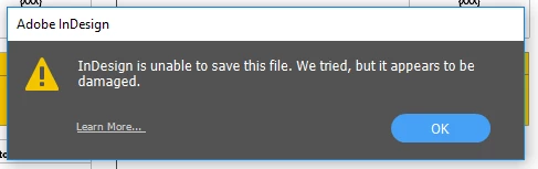 " InDesign is unable to save this file. We tried, but it appears to be damaged"