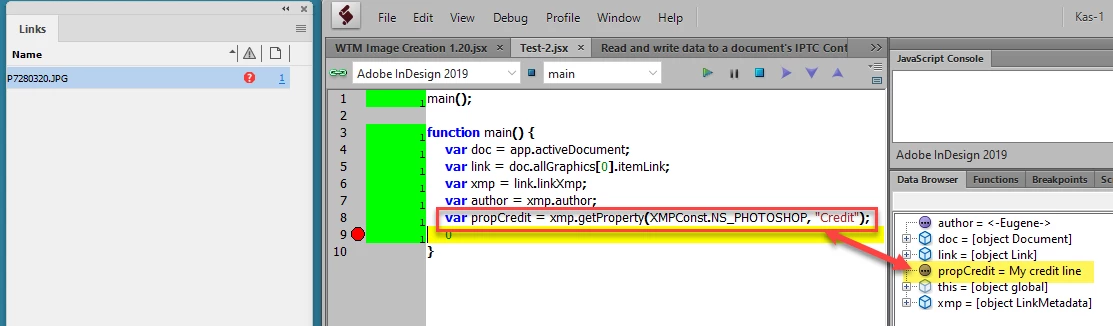 Indesign script – get xmp metadata for broken links