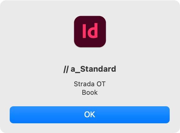 Generally this works fine, but unfortunately in some cases InDesing does report back wrong font styles (e.g. Book, instead of Regular). Font family names are always correct.