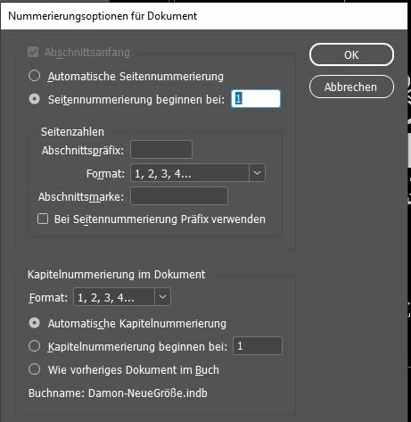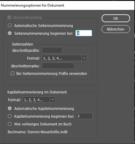 Ich hatte nie Probleme mit InDesign, aber plötzlich taucht dieser Fehler auf (siehe Screenshot). Ich habe, wie immer - mehrere Kapitel - die ich einzeln als Dokumente anlege und dann zu einem Buch zusammenfasse. Normalerweise ist es leicht, die Seitenzahlen fortlaufend zu aktualisieren - aber jetzt funktioniert es einfach nicht.