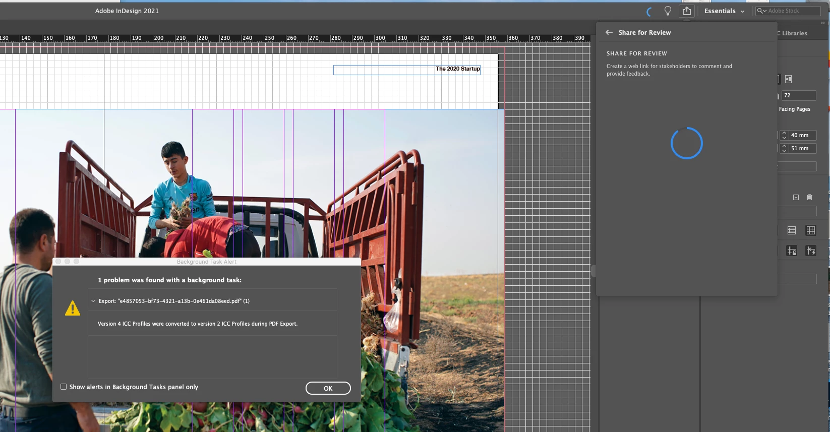 Using Share for Review in InDesign’s June 2020 release, you can share your designs for online review, and manage feedback right within the app. Stakeholders can open the shared document in a browser to provide feedback. Share for Review streamlines and simplifies the review process for both designers and their stakeholders.