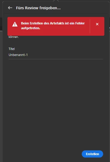 "Beim Erstellen des Artefakts ist ein Fehler aufgetreten."