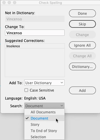Indesign Spellcheck - checking every word