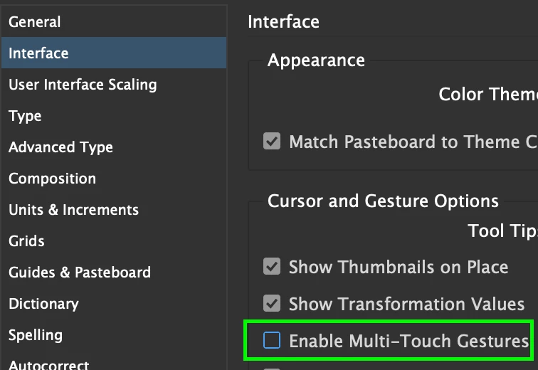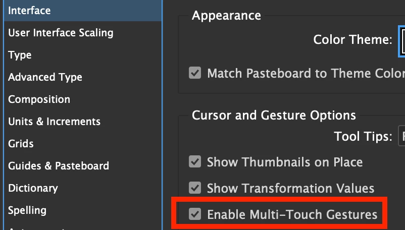 InDesign stuck on "Touch gestures" screen after opening