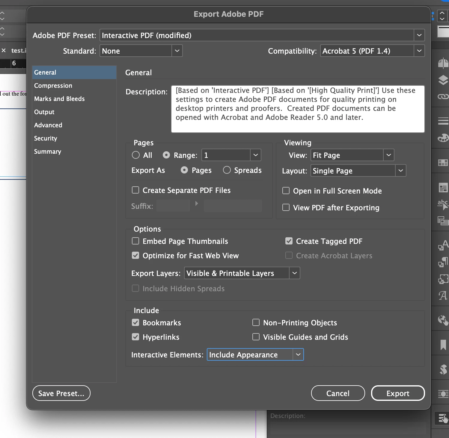 InDesign 20.3.1. Mac Sonoma 14.7.6. Most recent Acrobat Pro.