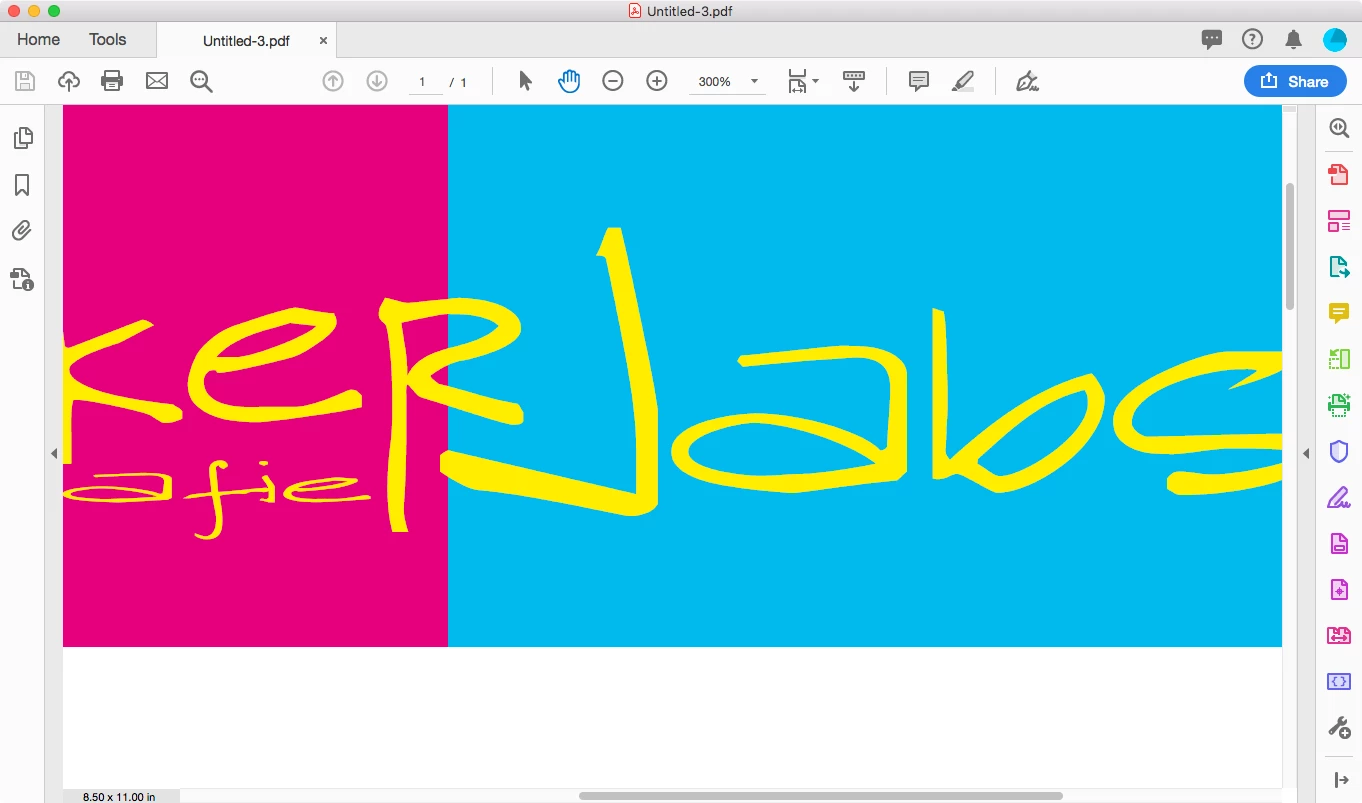 Erste optische Prüfung. Ich wähle die Sichtbarkeit der Druckfarbe "Schwarz" ab, um zu sehen, ob mein Schwarz eingefärbtes Logo den Hintergrund ausspart oder überdruckt. Offenbar spart das Logo den Hintergrund aus: