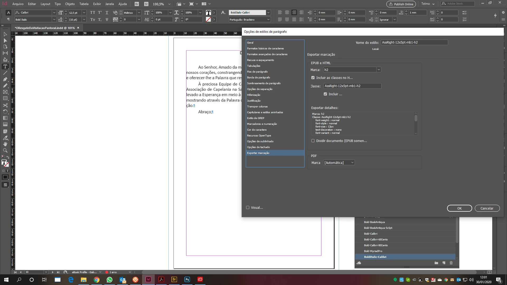 Esta última versão do InDesign não está acatando no "Exportar marcação" a hierarquia "marca" e nem a classe que é o mesmo nome do "nome do estilo". Ele assume as características do estilo anterior criado, tanto na "marca" como no "nome do estilo". Isso é um problema do InDesign ou de configuração? Alguém poderia me ajudar a esclarecer isto? A tela anexo é para demonstrar apenas aonde está ocorrendo o problema.