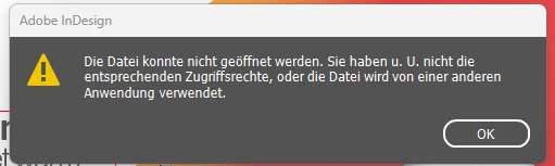 Ich erstelle eine Datei in InDesign und lege immer ein Ordner an für die Links-Bilder und Grafiken. Irgenwann kann ich auf manche Bilder nicht mehr zugreifen. Er meldet sich dann und sagt das mir die Zugriffsrechten fehlen. Kurz davor war noch kein Problem.