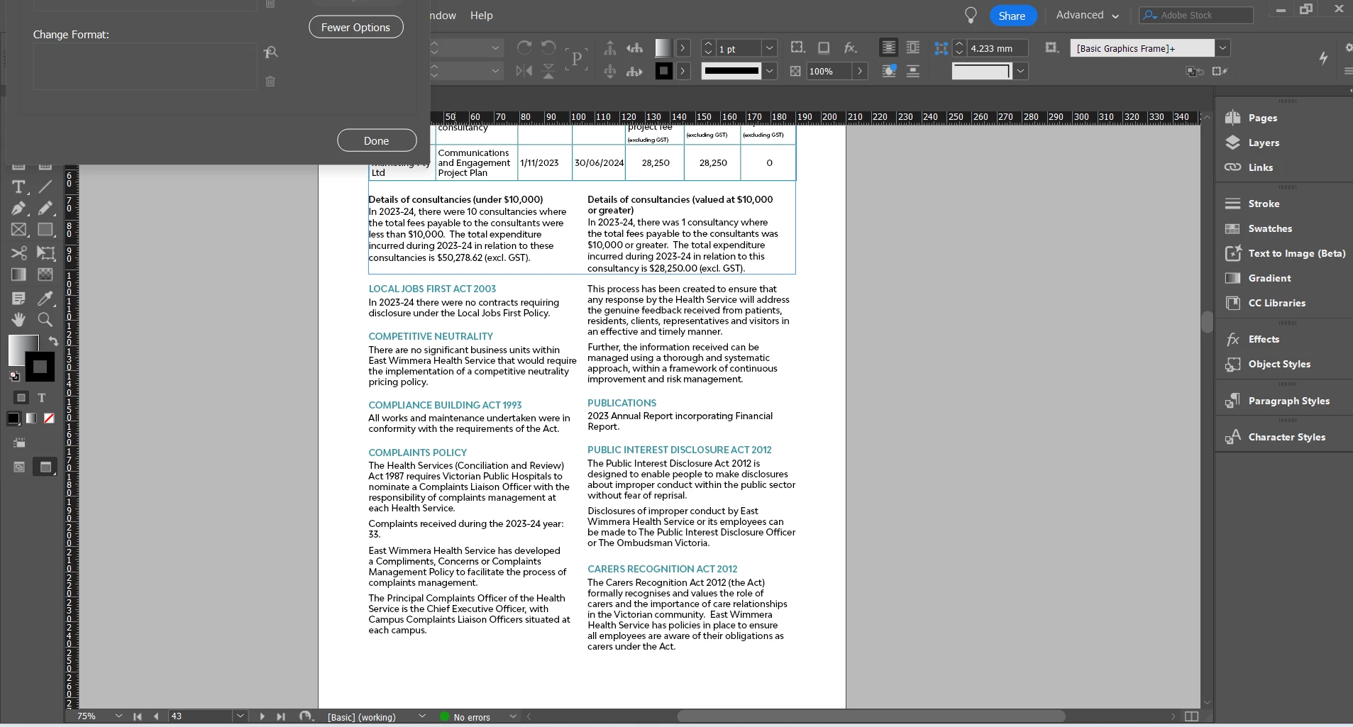 I'm using 2 external monitors with my new MacBook Pro. When I click on an item and try to change the color, stroke, opacity, etc., the window pops up just fine, but the windows are being partially cut off. For instance, when I click stroke, the stroke window comes up but is at the very top right side of my screen and I'm not able to see some of the options. The same thing happens with the fill window. I've attached a screenshot. Is there a way to drag these windows around to a better location?