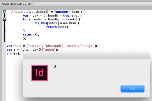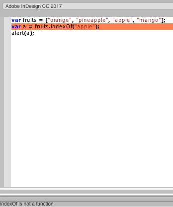 But if you execute in InDesign it wont "know" of .indexOf and throw an error: