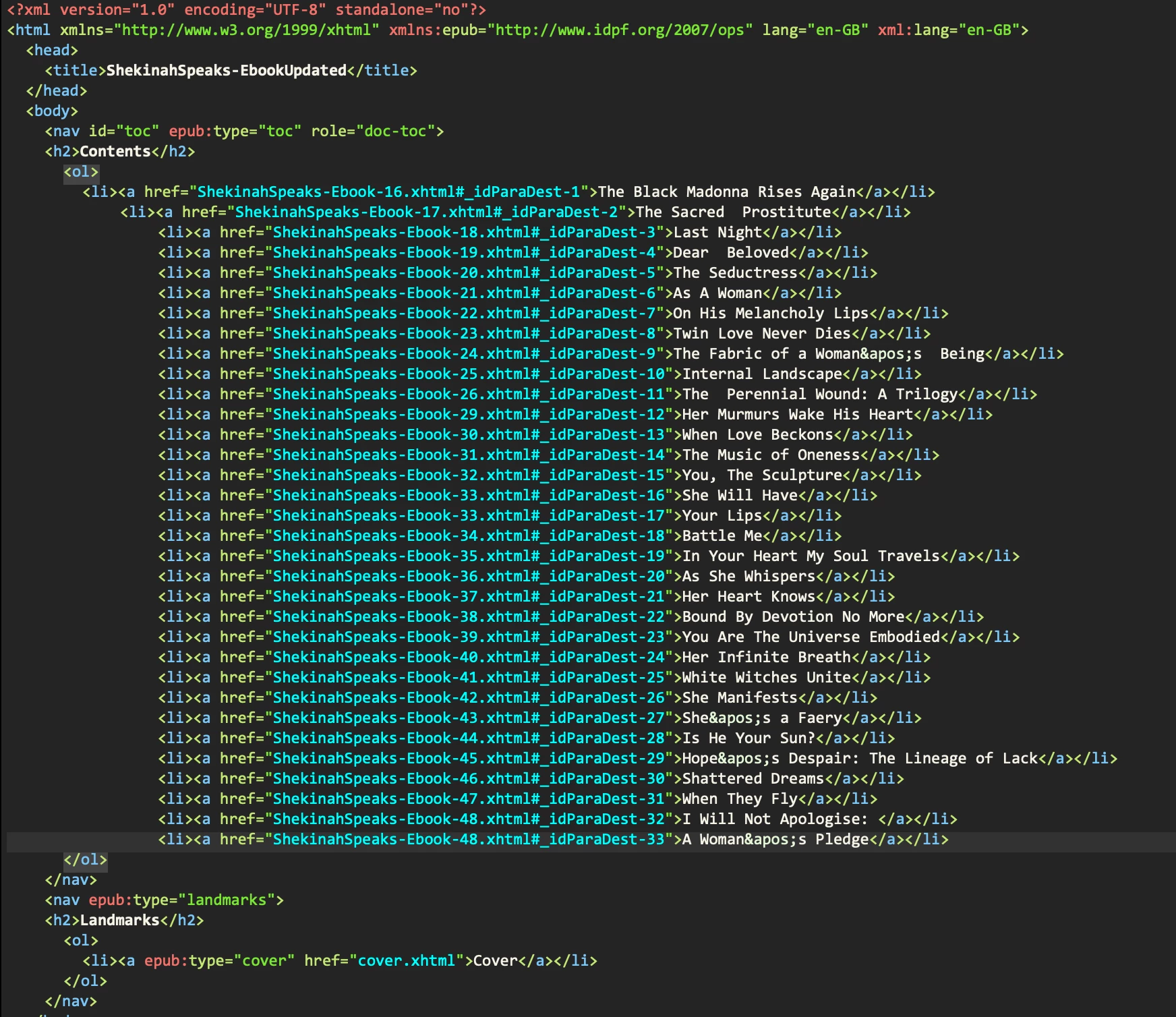 I have checked the code and all links in the TOC appear correctly labelled to correspond to tthe relevant ID markers on the relevant pages. I'm stuck, and my client's book needs to be published yesterday 🙂