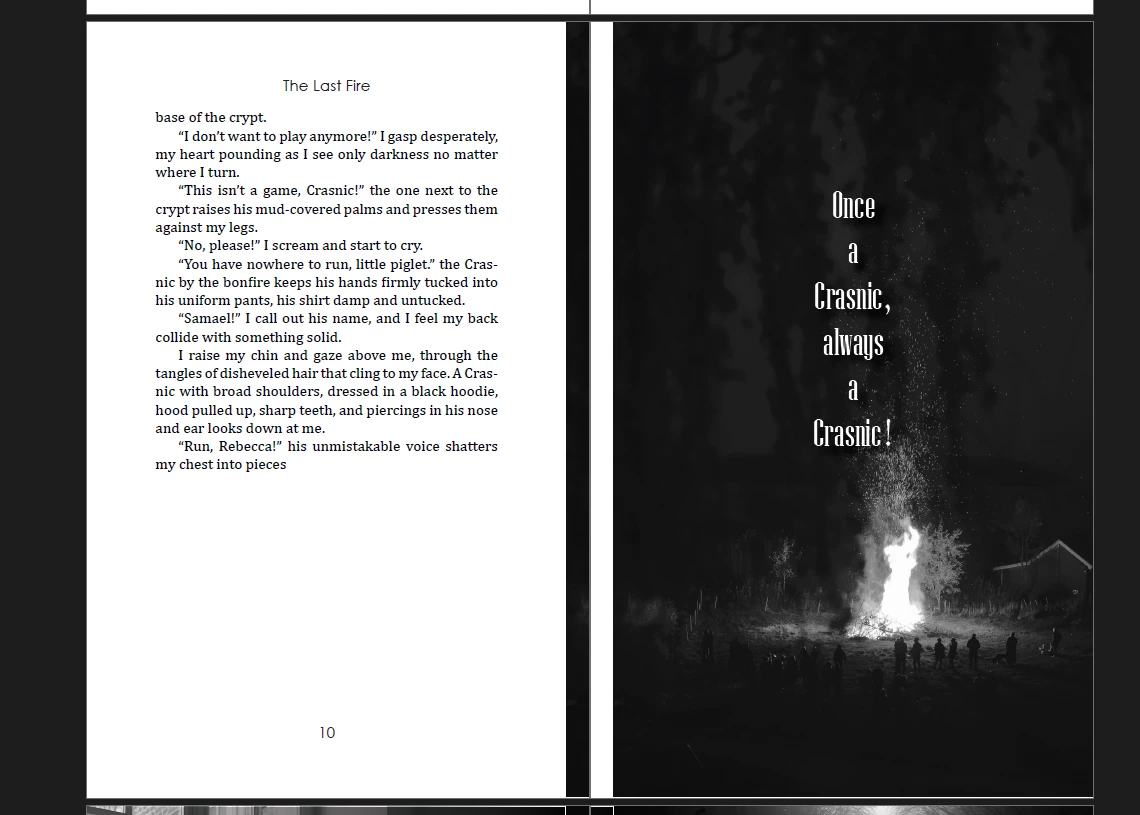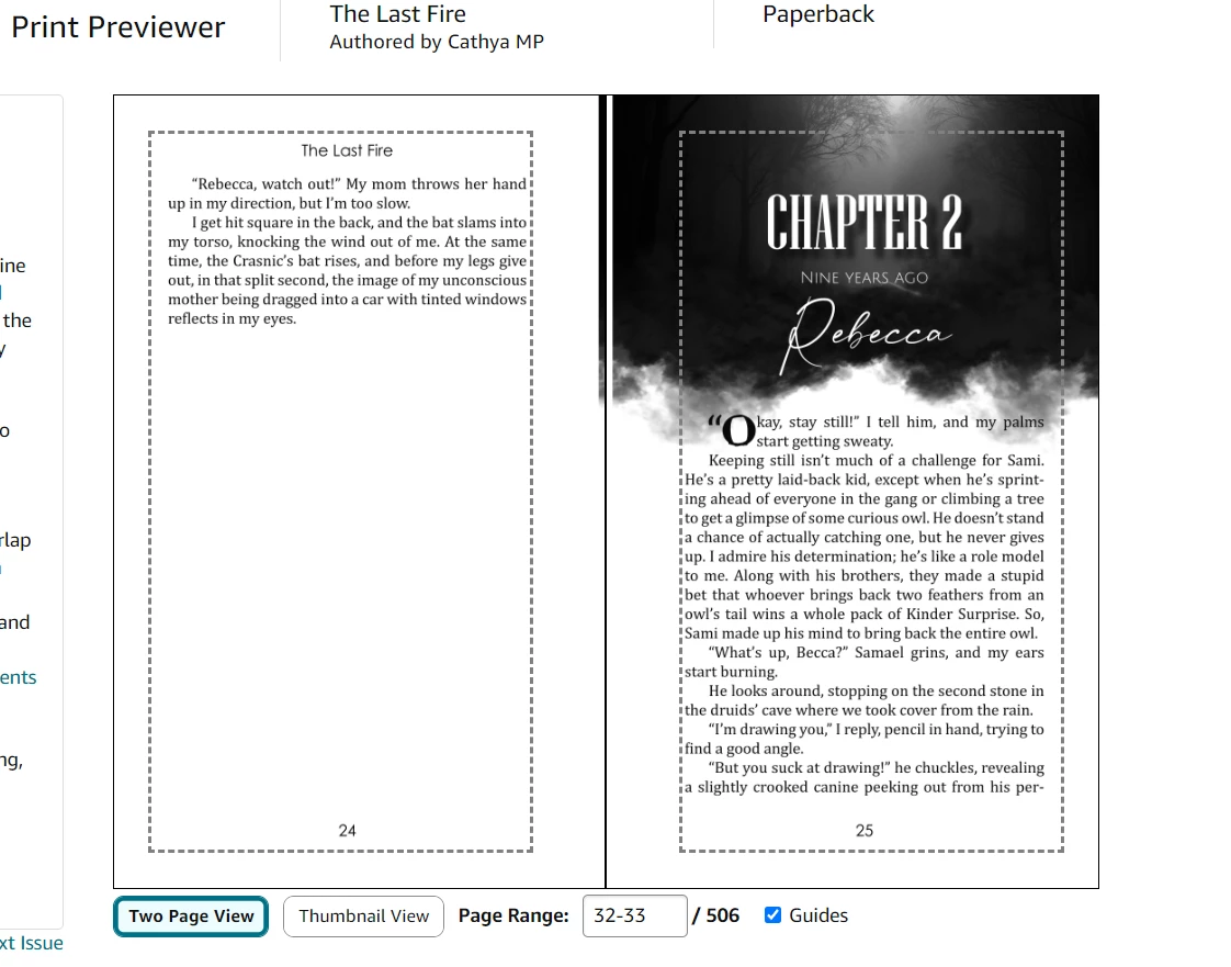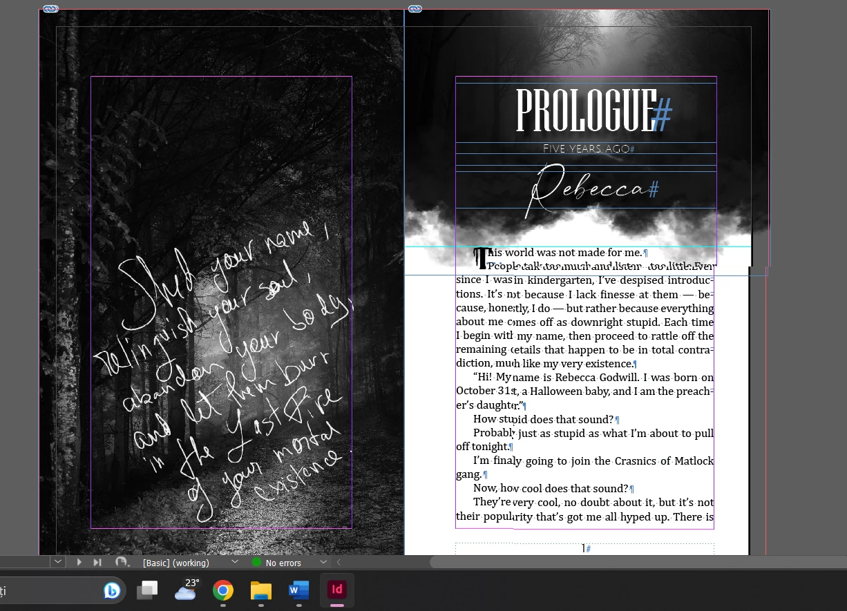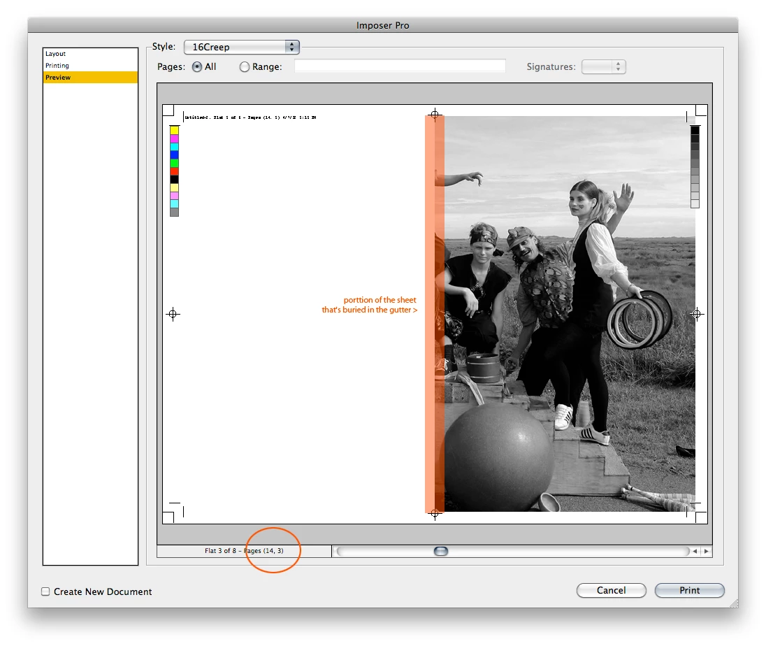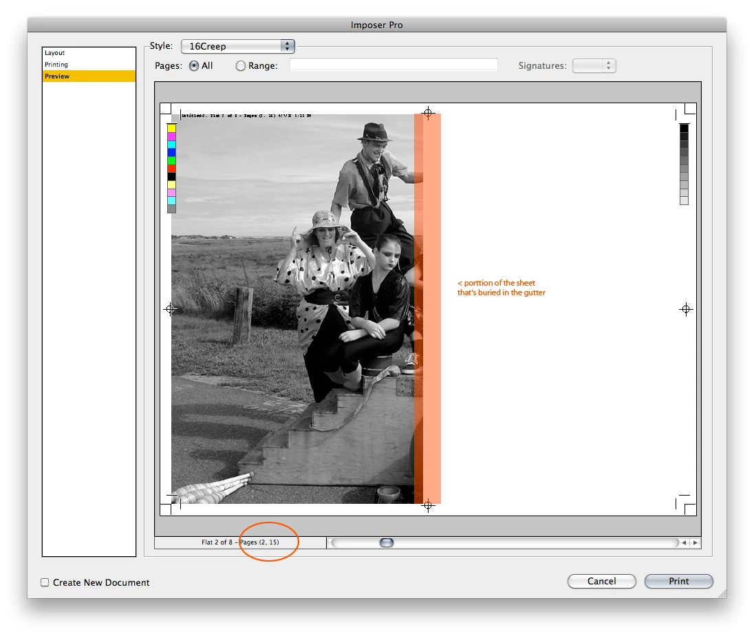 I have laid out a 257 page book in 6" x 9" format with facing pages. Some of the pages have full-bleed graphics so I set the bleed of all edges at 0.125" (1/8"). When I make a PDF of the layout, however, the inner margin is strange. Instead of having a proper bleed, some of the facing page gets assigned to the page. (see attached images).