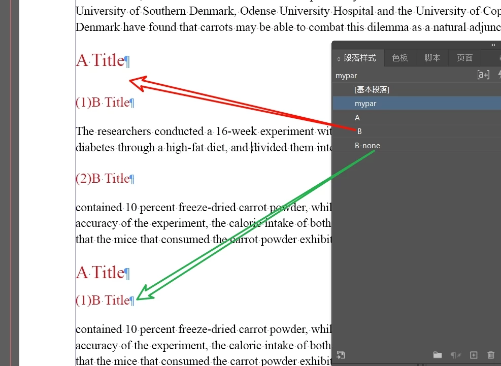 A, B two paragraph styles have paragraph spacing.