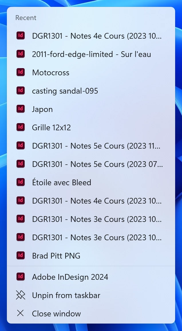 Is there a quick way to locate where I just saved my InDesign document?