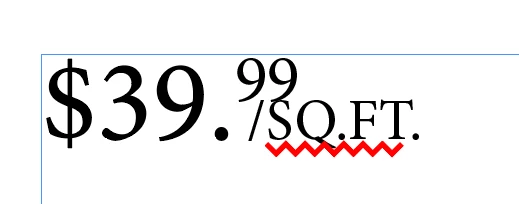 It looks to me like you could set the $39.99 first, then the /SQ FT, and kern the latter back to sit under the superscript.