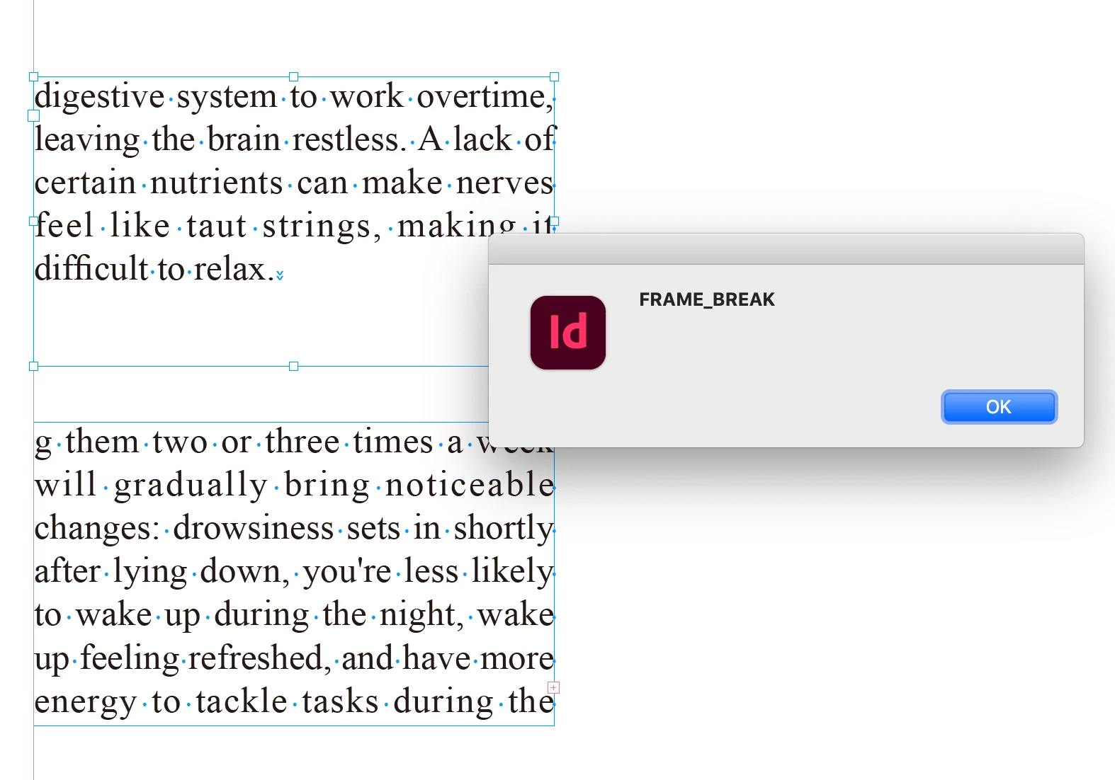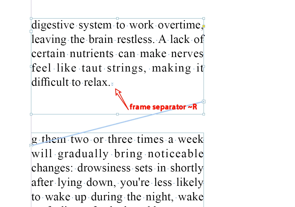 I want to check whether the currently selected frame contains a frame separator (~R) or a page separator (~P).
