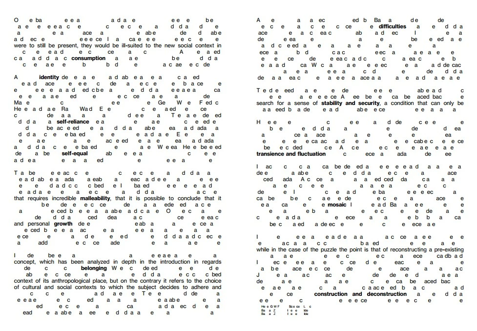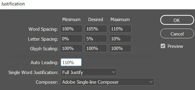 I have been having major issues in exporting a PDF version of my InDesign thesis. When I export a package or PDF, the text appears as gibberish, with missing letters. I will attach a screenshot of what it looks like when I export, what it's actually supposed to look like and the current justification settings.