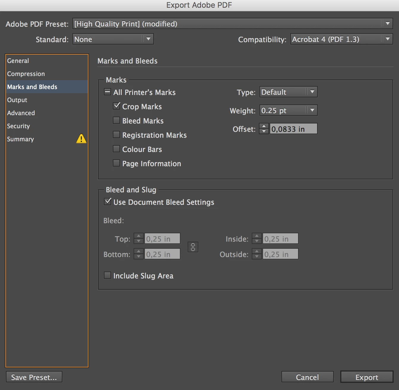 Can anyone help me to sort out what is going on with InDesign or with Acrobat? I don't understand anything. I am trying to export a booklet from ID to Acrobat. My page size is 11" x 8,5" (A4 horizontal), so I'm doing next: making bleed 0,25" for all sides, then doing as everyone on forums, youtube etc - adding crop marks, turning on "use document bleed settings" in Marks and Bleeds menu; in General I'm choosing High Quality Print, Compatibility - Acrobat 4 (PDF 1.3).