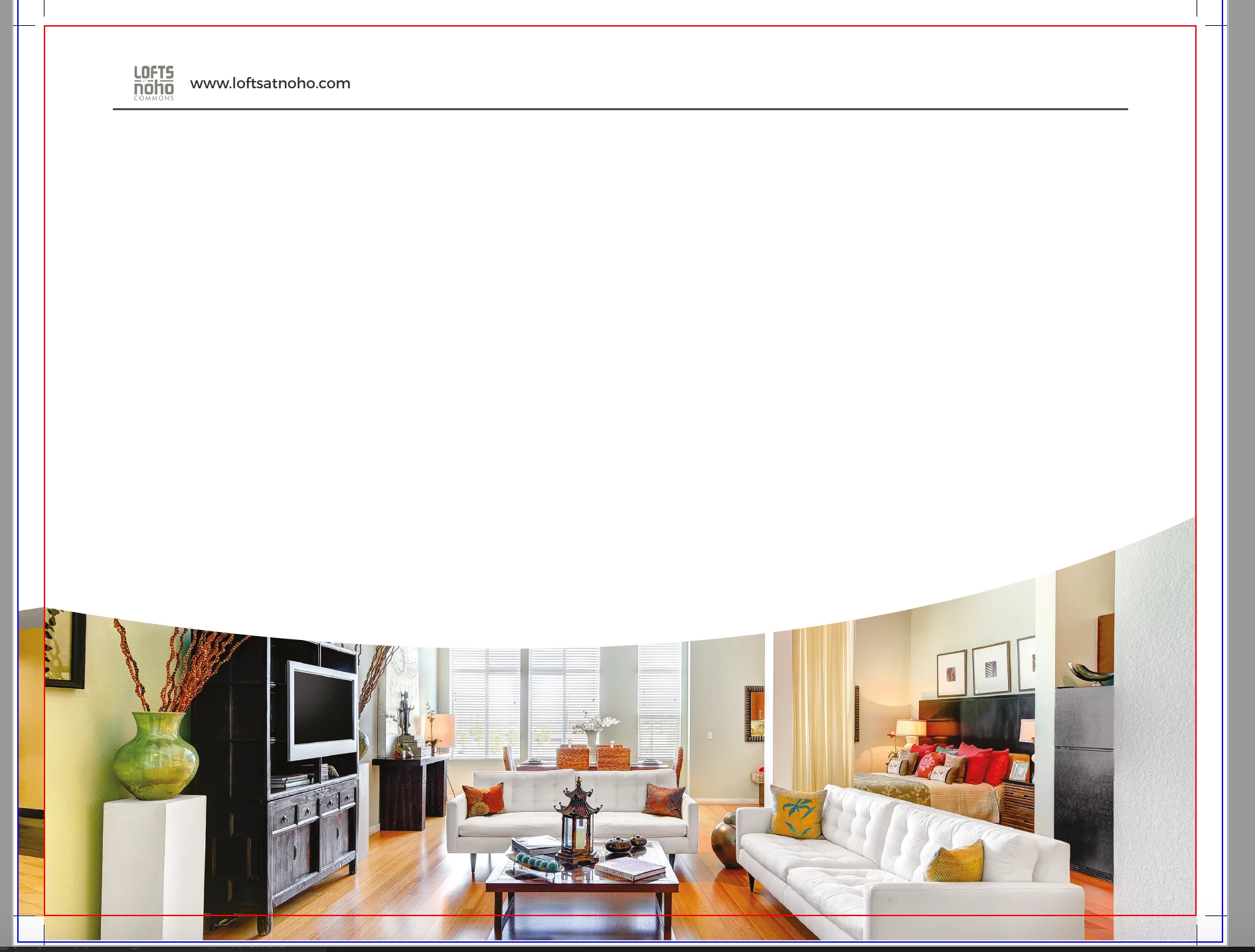 You are fine now! Red stroke represents where the printer will trim. No risk of seeing blank paper after trimming.