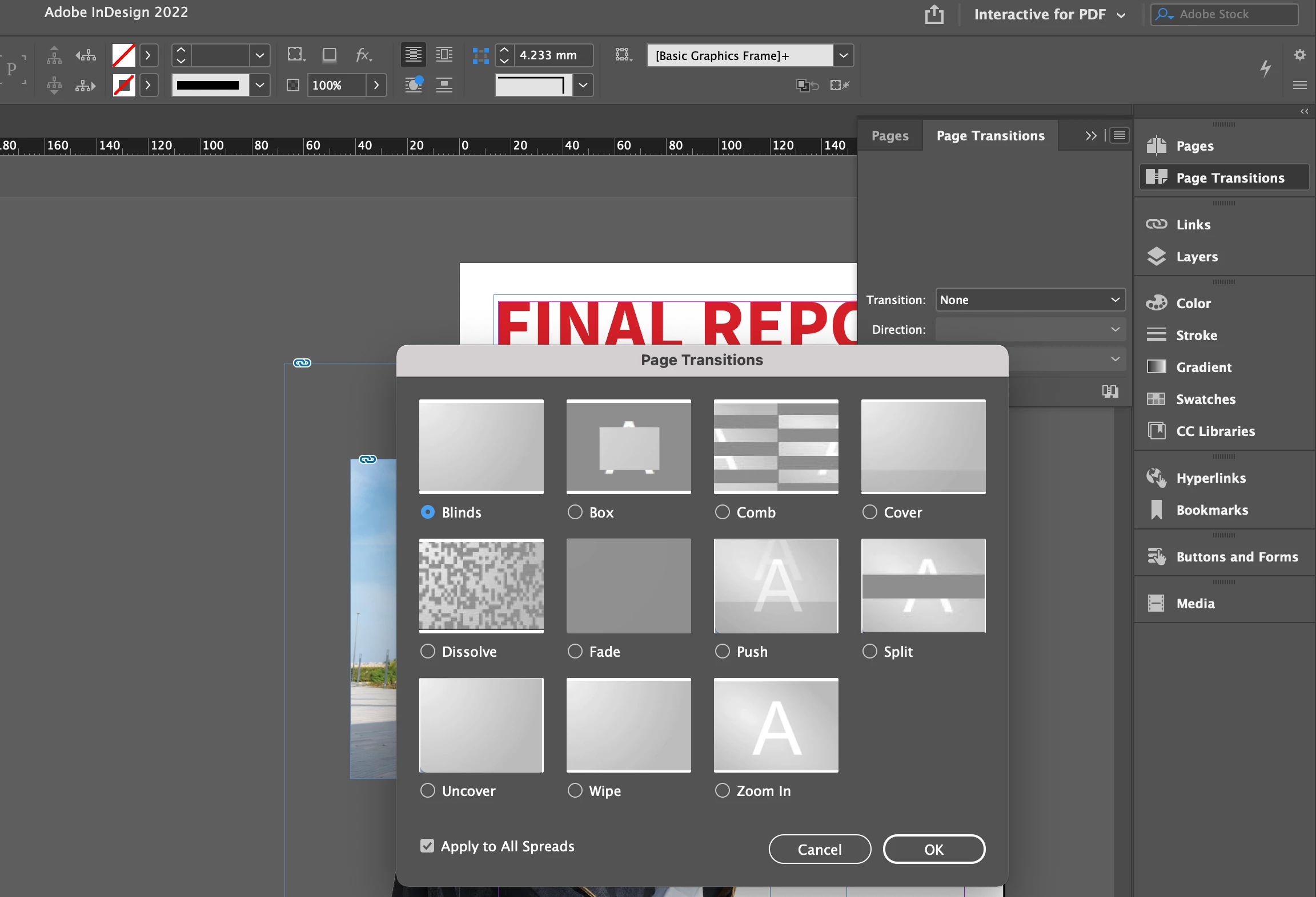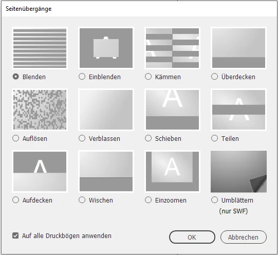 I'm tring to choose (page turn) from page transition but it is not apper at all
