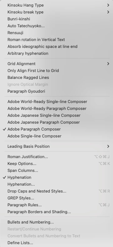 - I've set the Adobe Paragraph Composer (default is Japanese Adobe Paragraph Composer)
