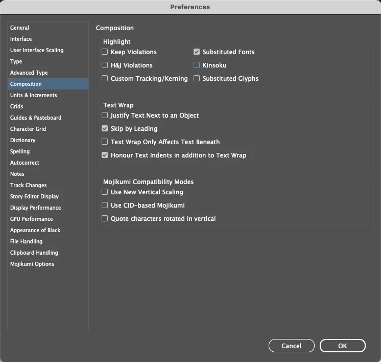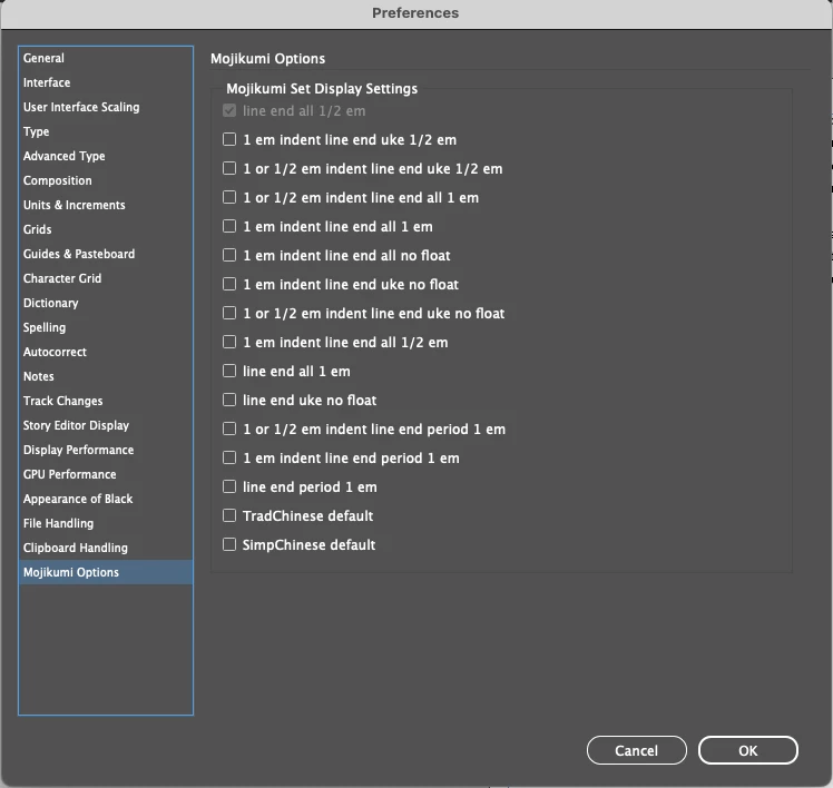 - I've turned off every single Mojikumi setting in the Preferences and in the Paragraph menu.