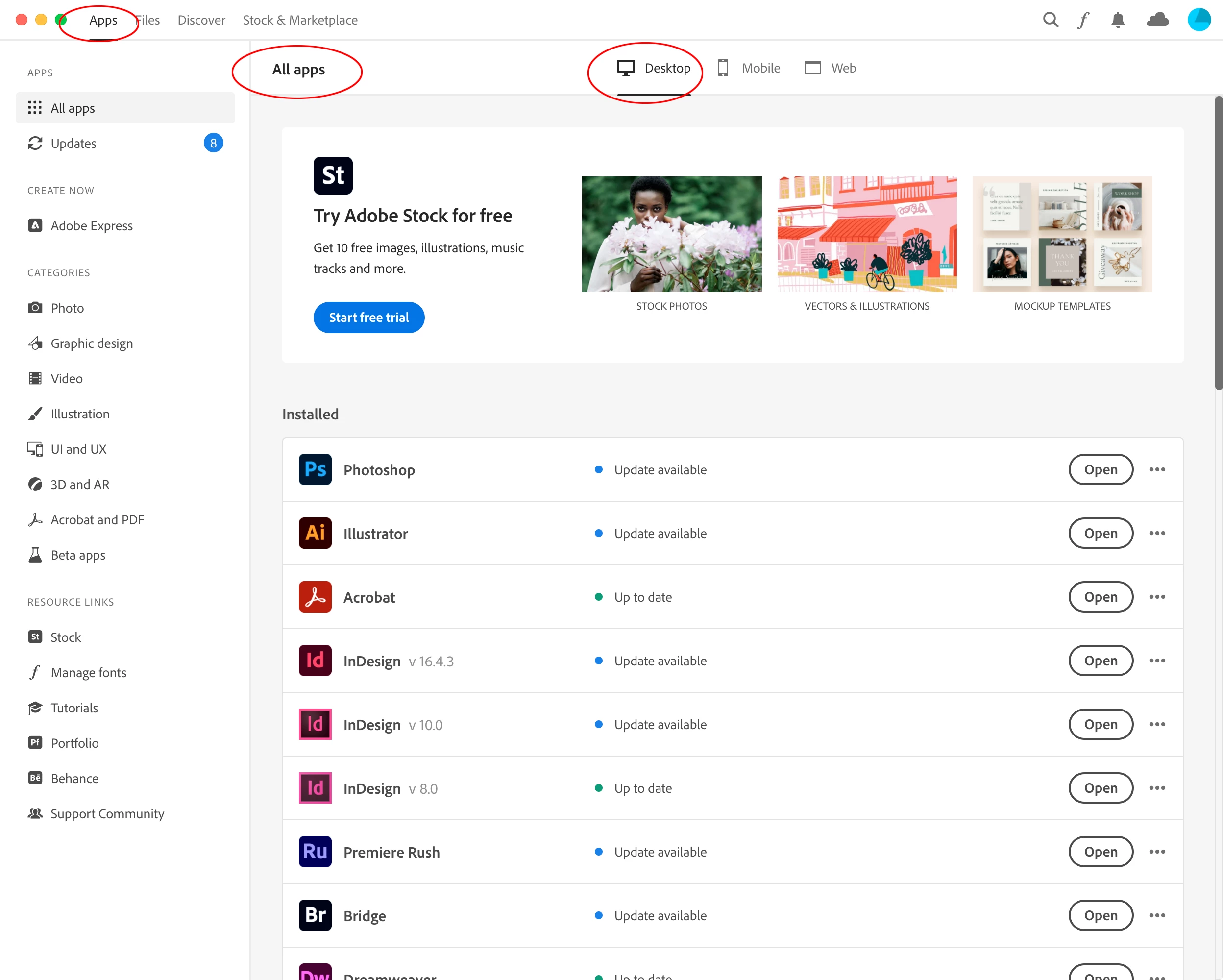 Ich habe kein Zugriff drauf. Ich komme nicht in dieses Programm rein, wenn ich im Creative Cloud Desktop drauf klicke.
