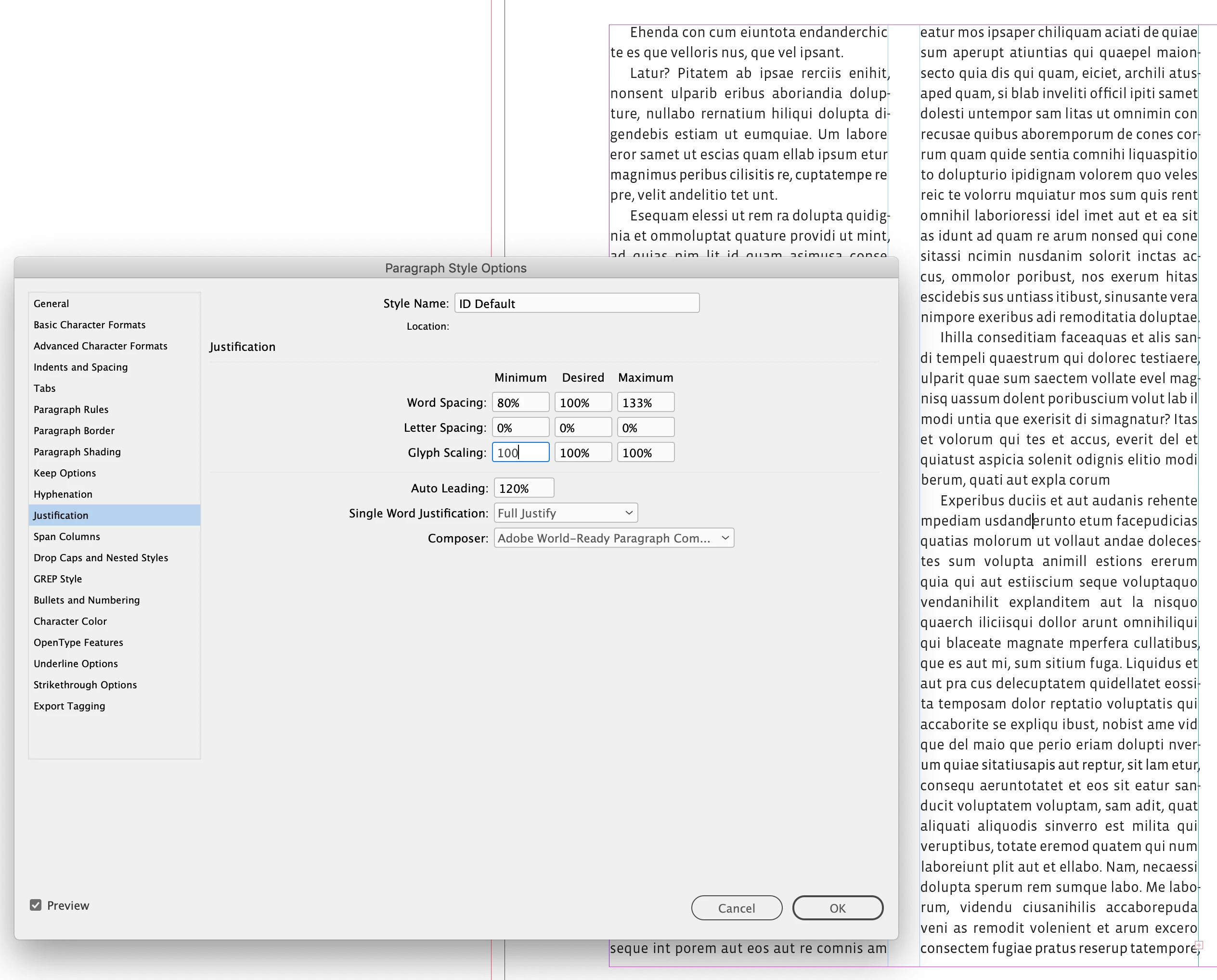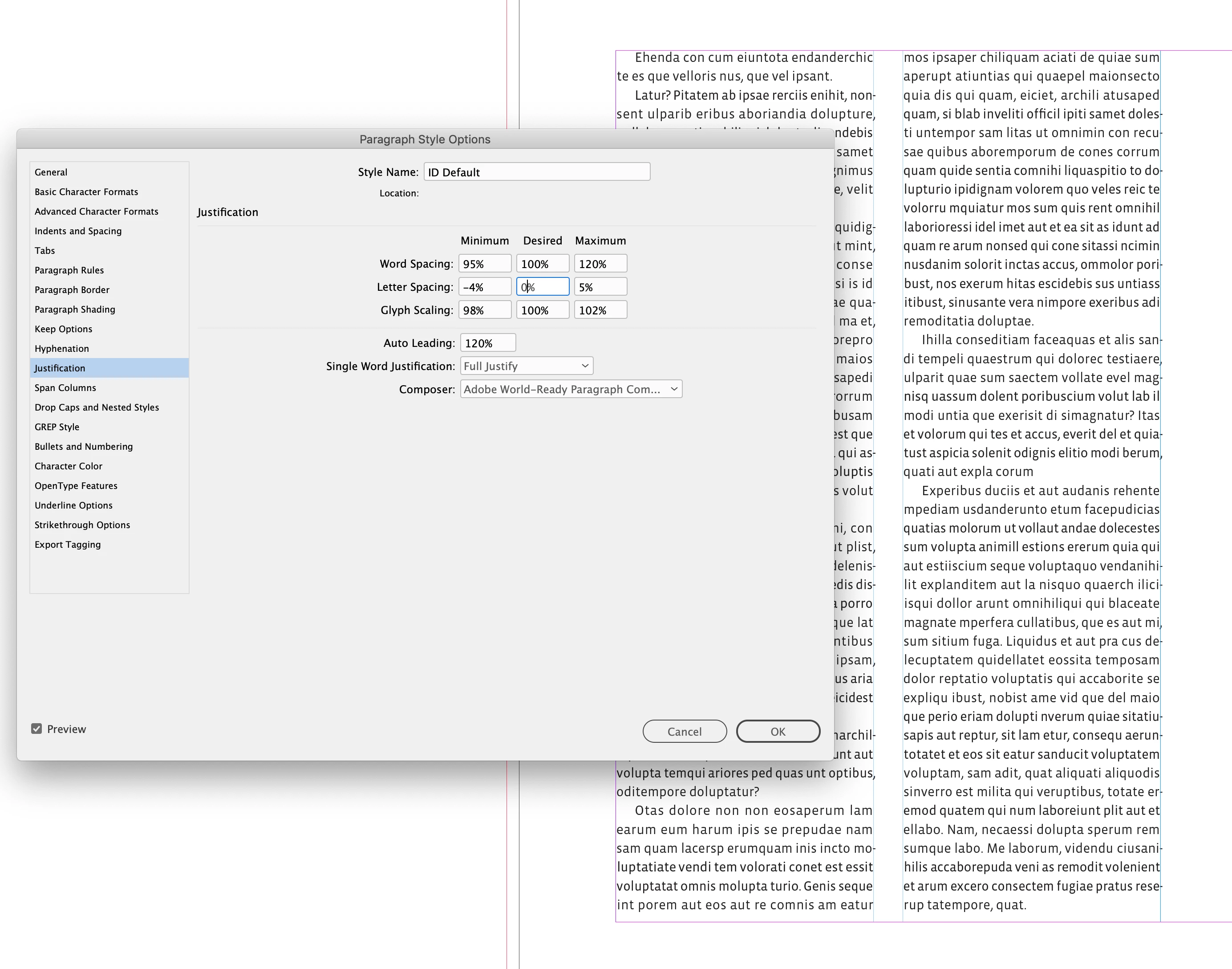 I am working on a book in Indesign. Normally my spacing between characters is fine.