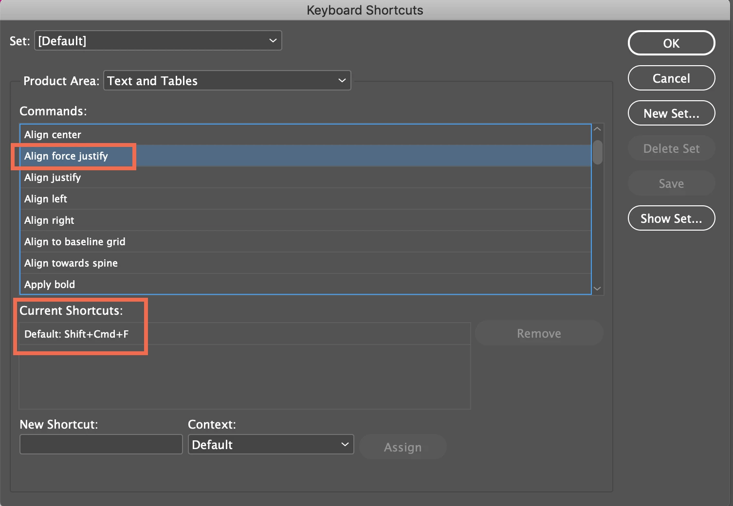 Keyboard shortcut for full justify in InDesign