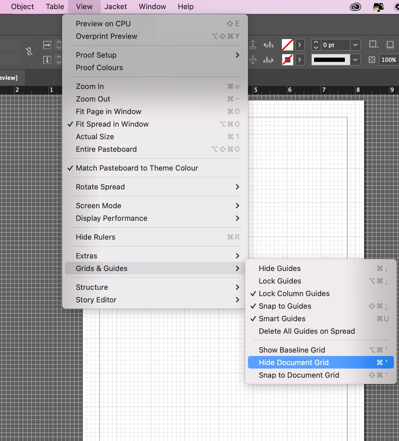 Keyboard shortcuts "command+h" to hide the guides