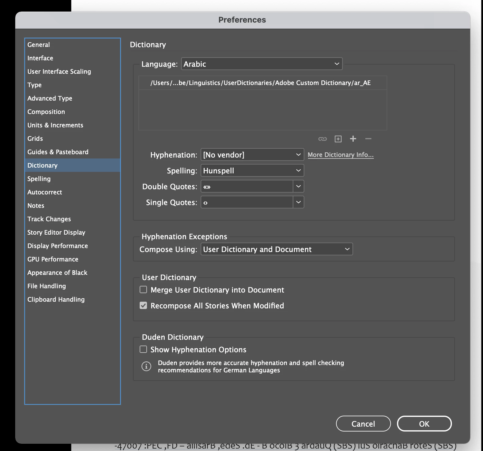 1) In Preferences, I changed the dictionary to Arabic;