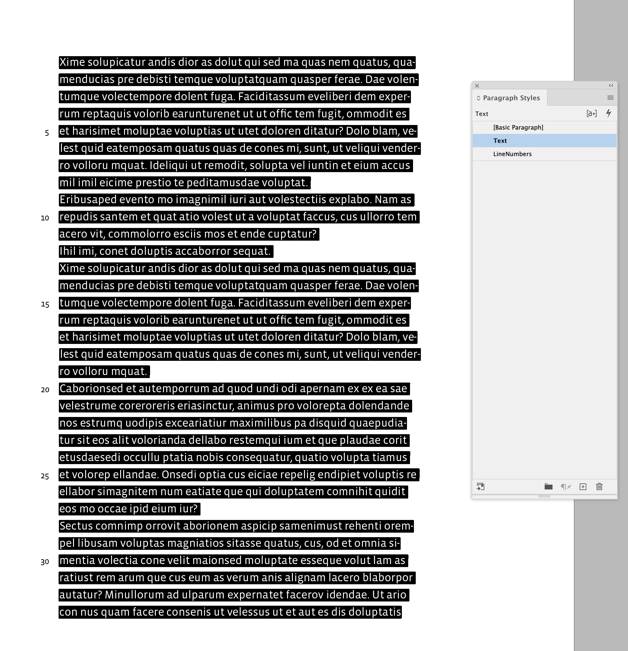 Does this, the numbers get a Paragraph Style named Line Numbers
