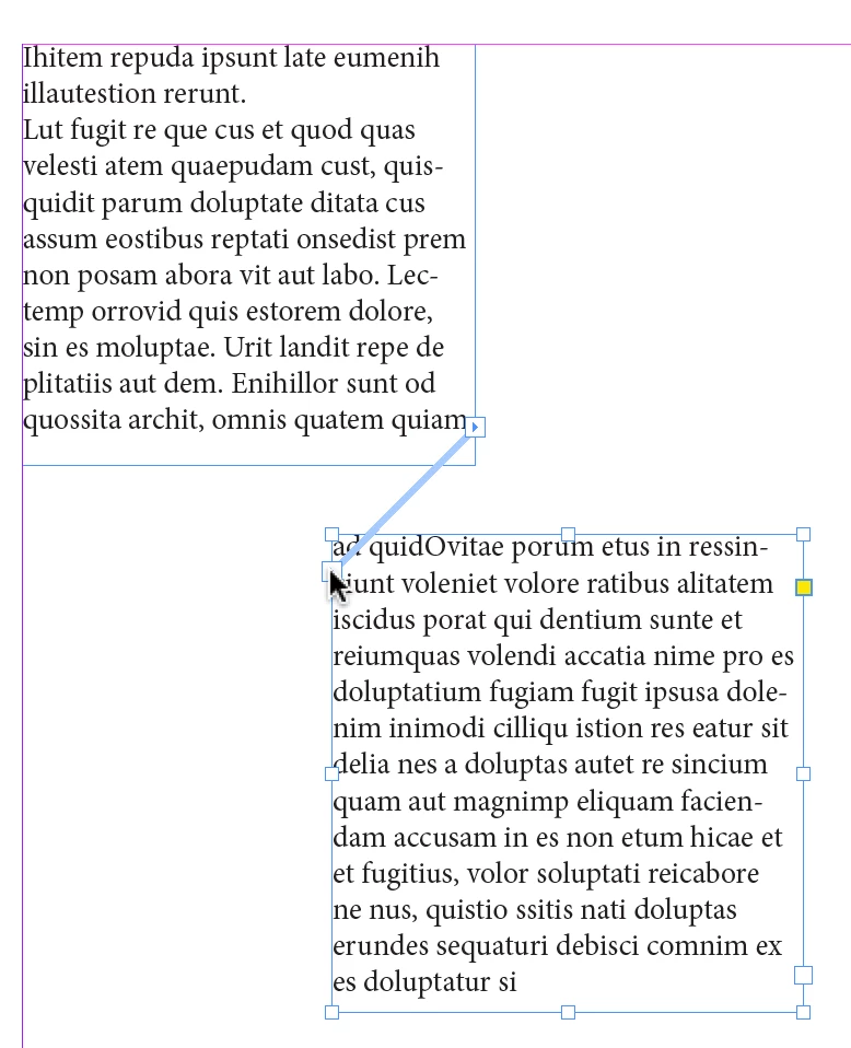 Link two existing text frames together (both have text)