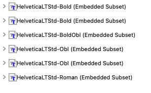 Very inconsistent results. Most words are ok. All words look like they rendered the same way. Fonts used in the document are Helvetica LT Std, Helvetica LT Pro, among others.