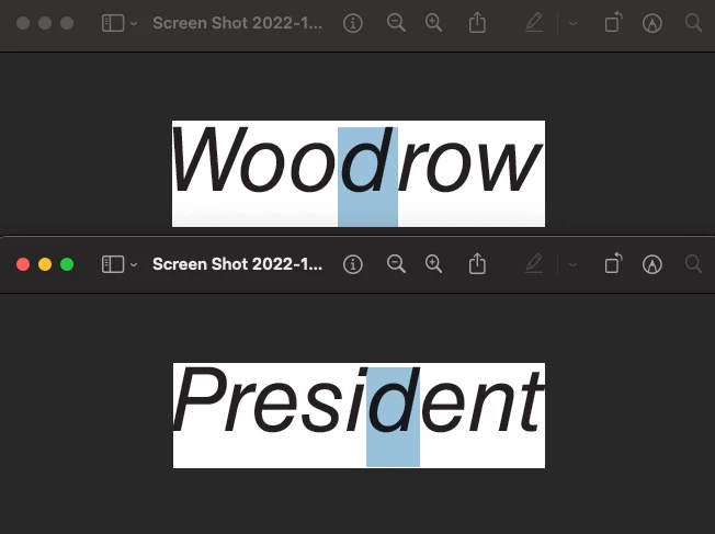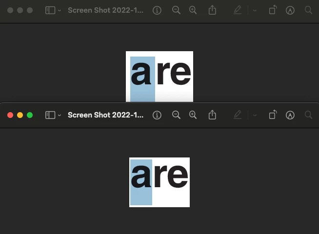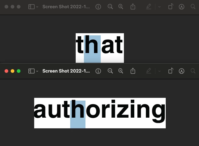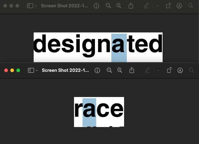 - The exported PDF shows random cases where letters in words are kerned together with no gap between characters. See uploaded screenshots. The "a" and "r" are kerned together in "are" and "a" and "t" in "designated". The screenshots of the PDFs are showing in Edit mode to display the Acrobat character outlines.