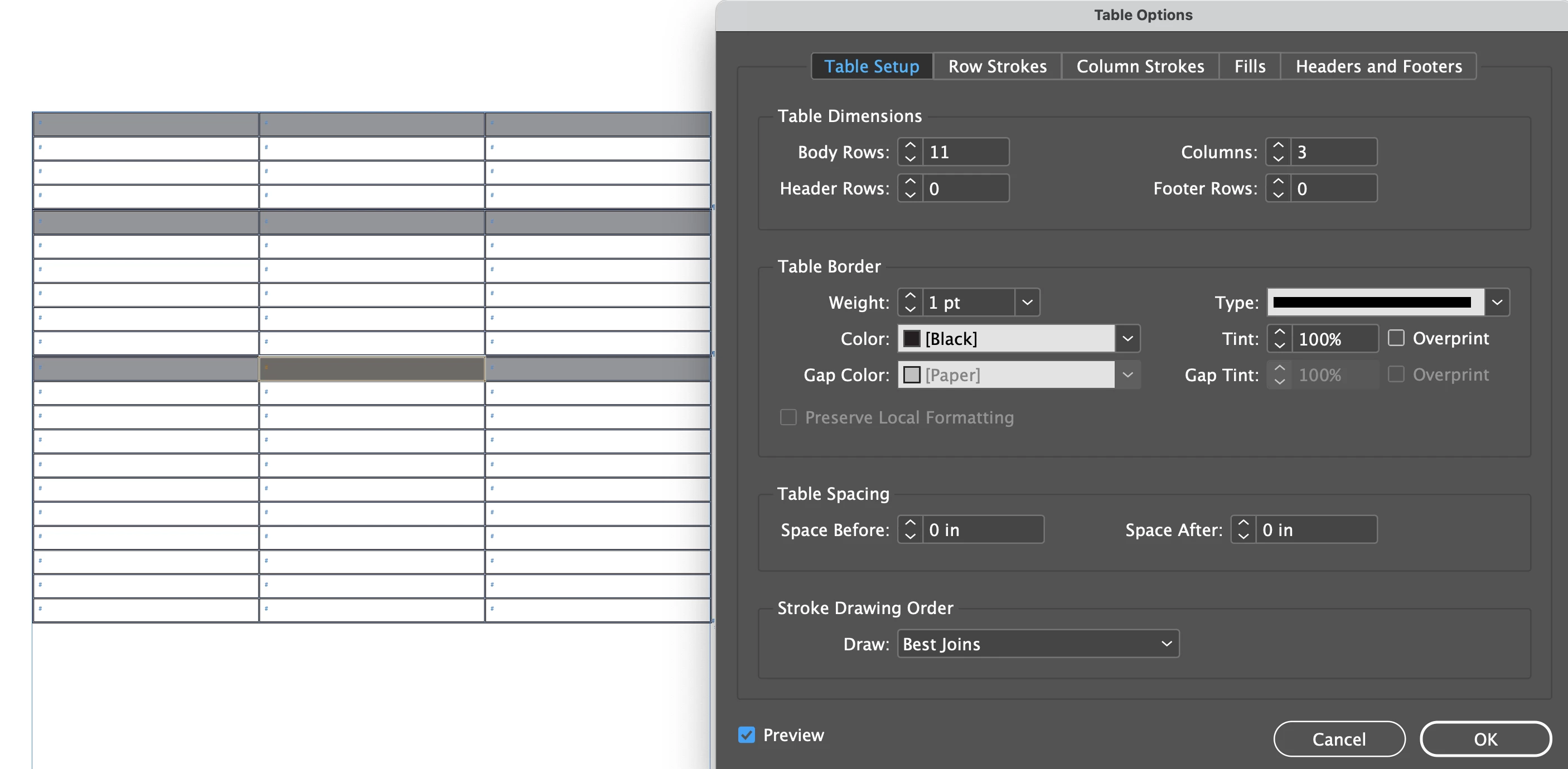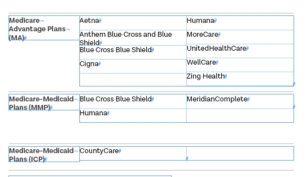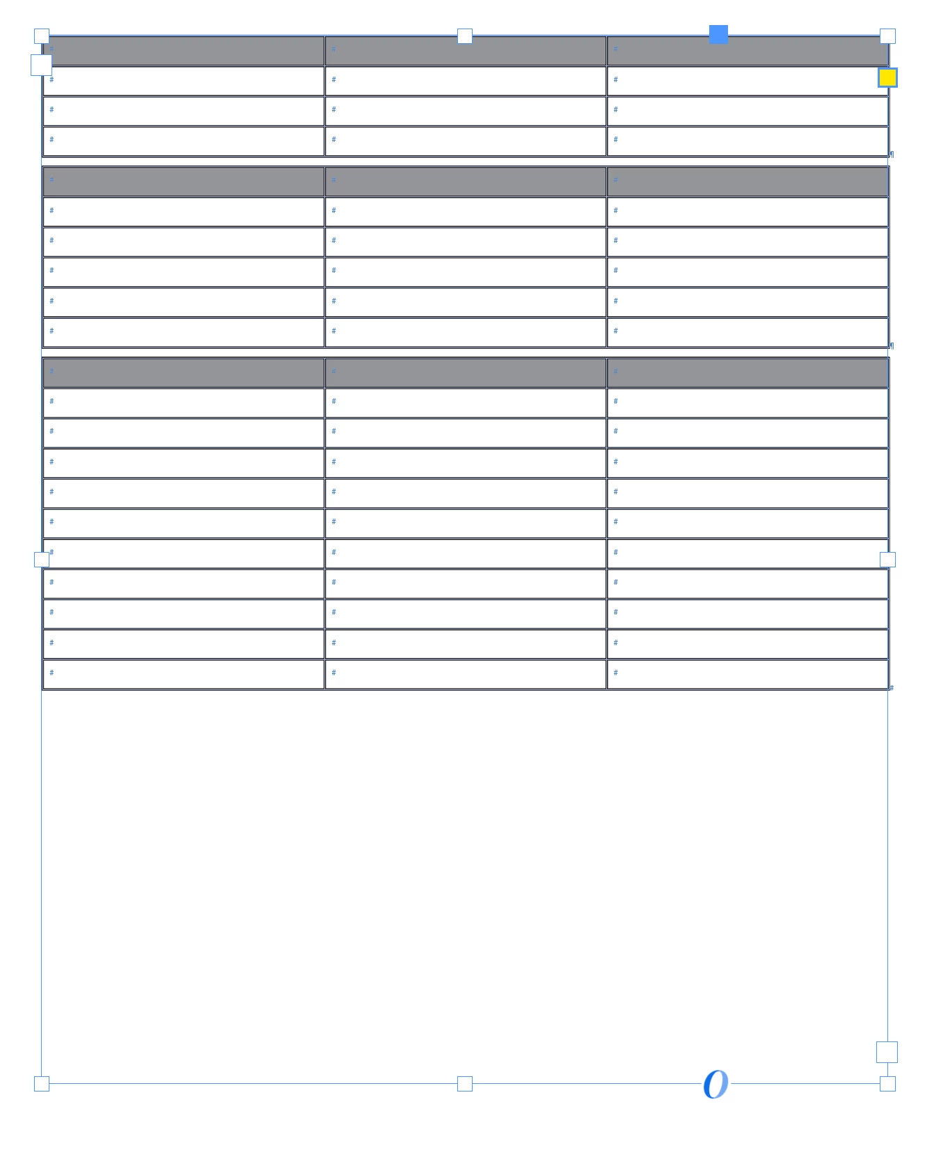 When I anchor the tables into the same text box the text box flows to the same size as the left header text box and if the table has a lot of entries the table grows down outside of the text box which then overlaps the table below.