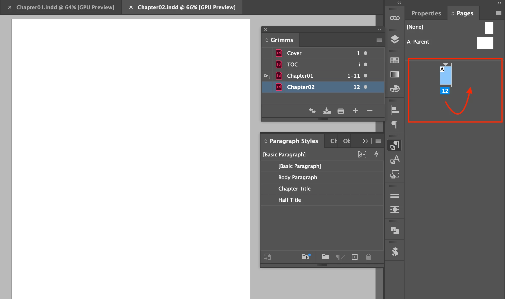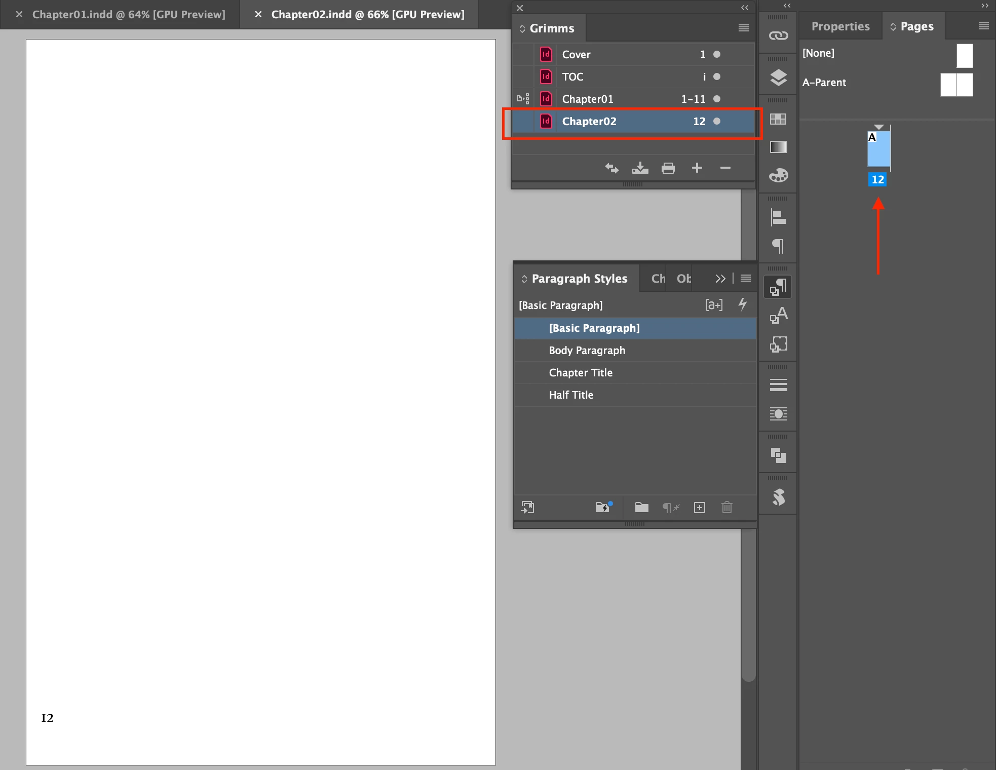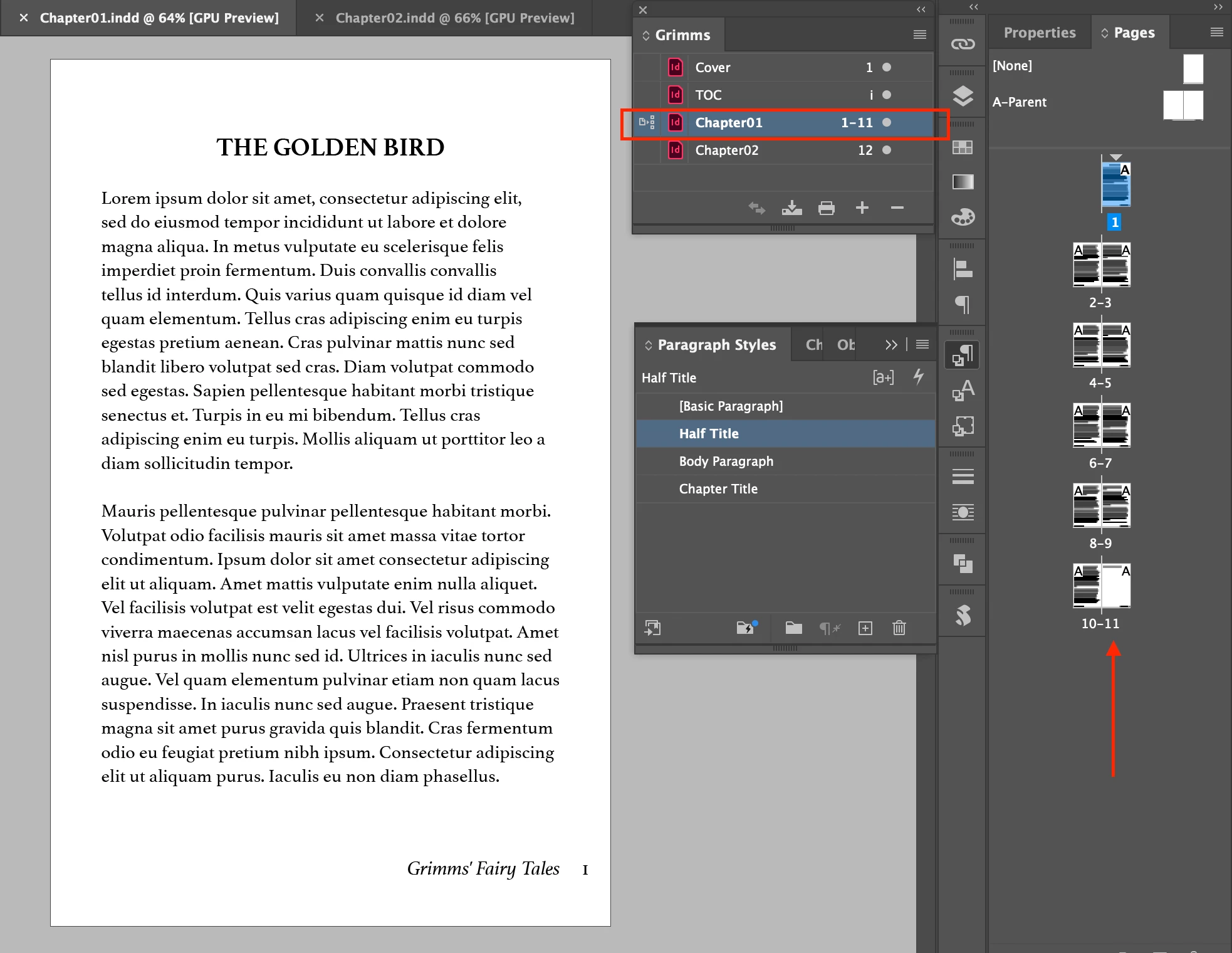 In the Grimms book panel, Chapter01 finishes in page 11.