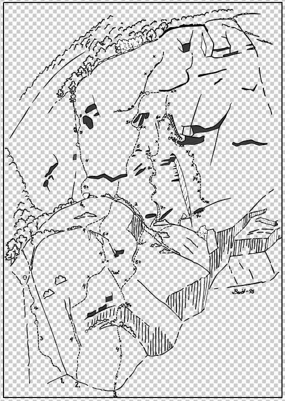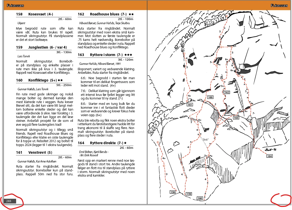 I'm writing a climbing guidebook where the climbs are described by drawings, where the routes are drawn inn with lines on those drawings. Next to those there's some text with info and grades etc...