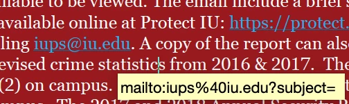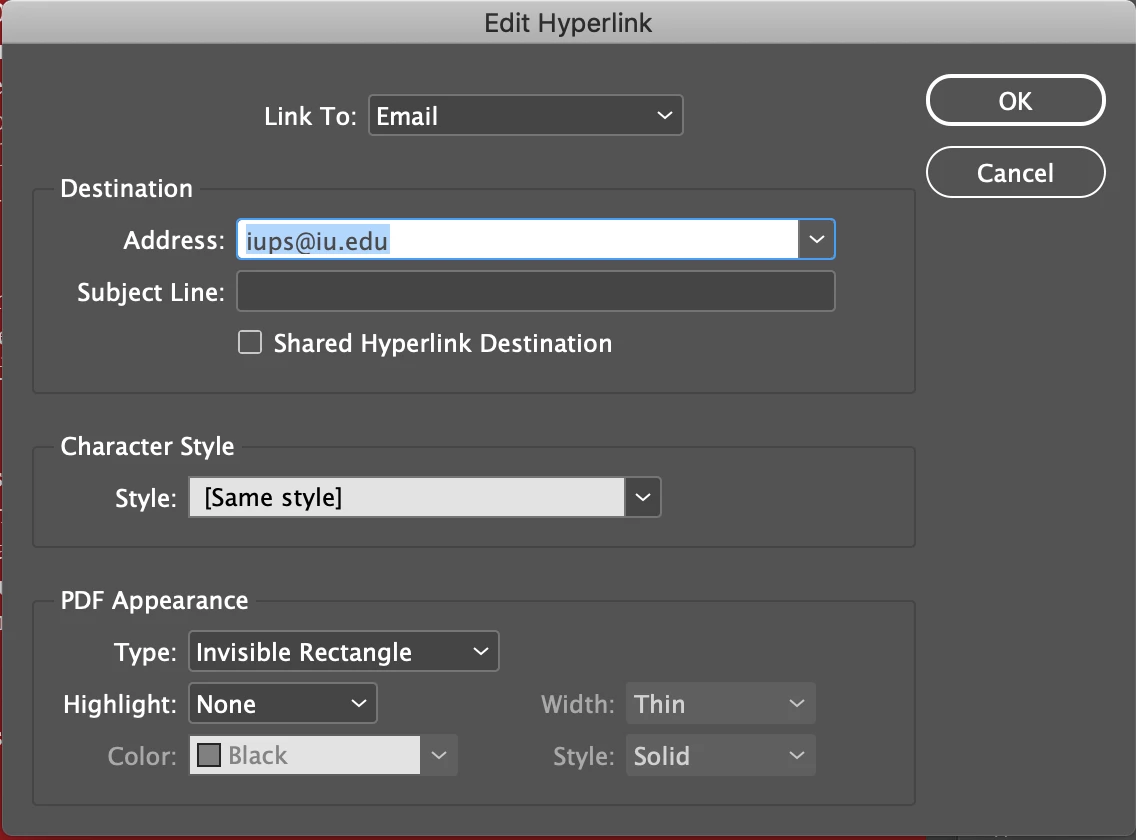 When saving my document, I have exported it as an interactive PDF and also saved it under the Adobe PDF Pressets as the smallest file size with the hyperlink box checked. None of the emails in all of the versions I have saved work. When I hover over the email address, however, the email address appears different (See below) but continues to look as I had typed it in the Edit Hyperlinks box. I have tried retyping in the address by hand but still get the same result.